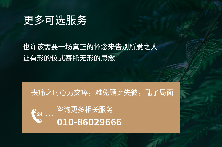 亲人离世后5小时内是最适宜的穿衣期。在医院或家里均可提供服务。服务标准化、流程化,定价合理,绝不加价
