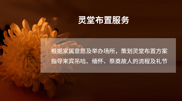 无论场地大小,任何时间,均可为您的亲人提供灵堂布置相关服务